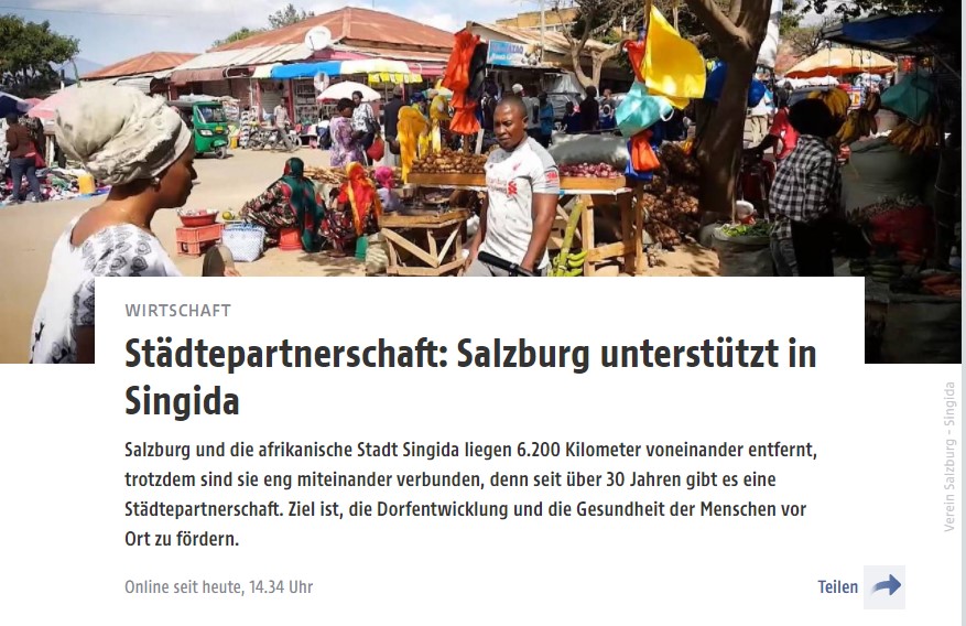 Salzburg und die afrikanische Stadt Singida liegen 6.200 Kilometer voneinander entfernt, trotzdem sind sie eng miteinander verbunden, denn seit über 30 Jahren gibt es eine Städtepartnerschaft. Ziel ist, die Dorfentwicklung und die Gesundheit der Menschen vor Ort zu fördern. Mehr dazu in diesem ORF-Beitrag