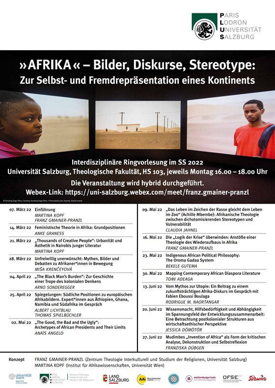 Ein spanendes Programm bietet die interdisziplinäre Ringvorlesung der Universität Salzburg zum Thema „Afrika – Bilder, Diskurse, Stereotype“. Teilnahme möglich vor Ort an der Theologischen Fakultät und via Internet. Webex-Link: https://uni-salzburg.webex.com/meet/franz.gmainer-pranzl