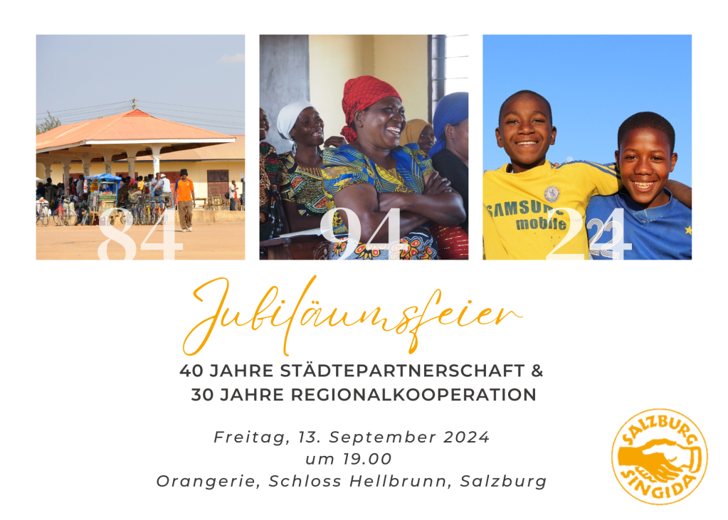 Die Regionalkooperation Salzburg-Singida lädt zur Jubiläumsfeier. Bei einer informativen und feierlichen Veranstaltung in Hellbrunn wird ein Blick auf die Entwicklungen von 30 Jahre Regionalkooperation und 40 Jahre Städtepartnerschaft zwischen Salzburg und Singida (Tansania) im Kontext der Entwicklungszusammenarbeit geworfen. Die Projektpartner:innen Afesso Ogenga und Violet Shaku sind zu Gast und berichten von den Projekten in Singida. Im Anschluss gibt es ein kleines Buffet, bei dem wir den Abend gemütlich ausklingen lassen.