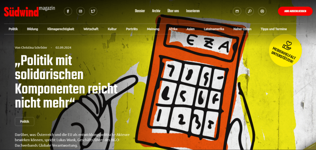 Der Dachverband Globale Verantwortung – Arbeitsgemeinschaft für Entwicklung und Humanitäre Hilfe (AGGV) hat im Vorfeld der Nationalratswahl ihren Wahlprogramm-Check gemacht und dabei die Positionen der Parteien mit ihren entwicklungspolitischen Forderungen verglichen. Geschäftsführer Lukas Wank erklärt im Interview mit dem Südwind-Magazin, was die noch amtierende Bundesregierung in den vergangenen Jahren im Bereich Entwicklungszusammenarbeit (EZA) und Humanitäre Hilfe erreicht hat und was die AGGV von der nächsten Regierung fordert.