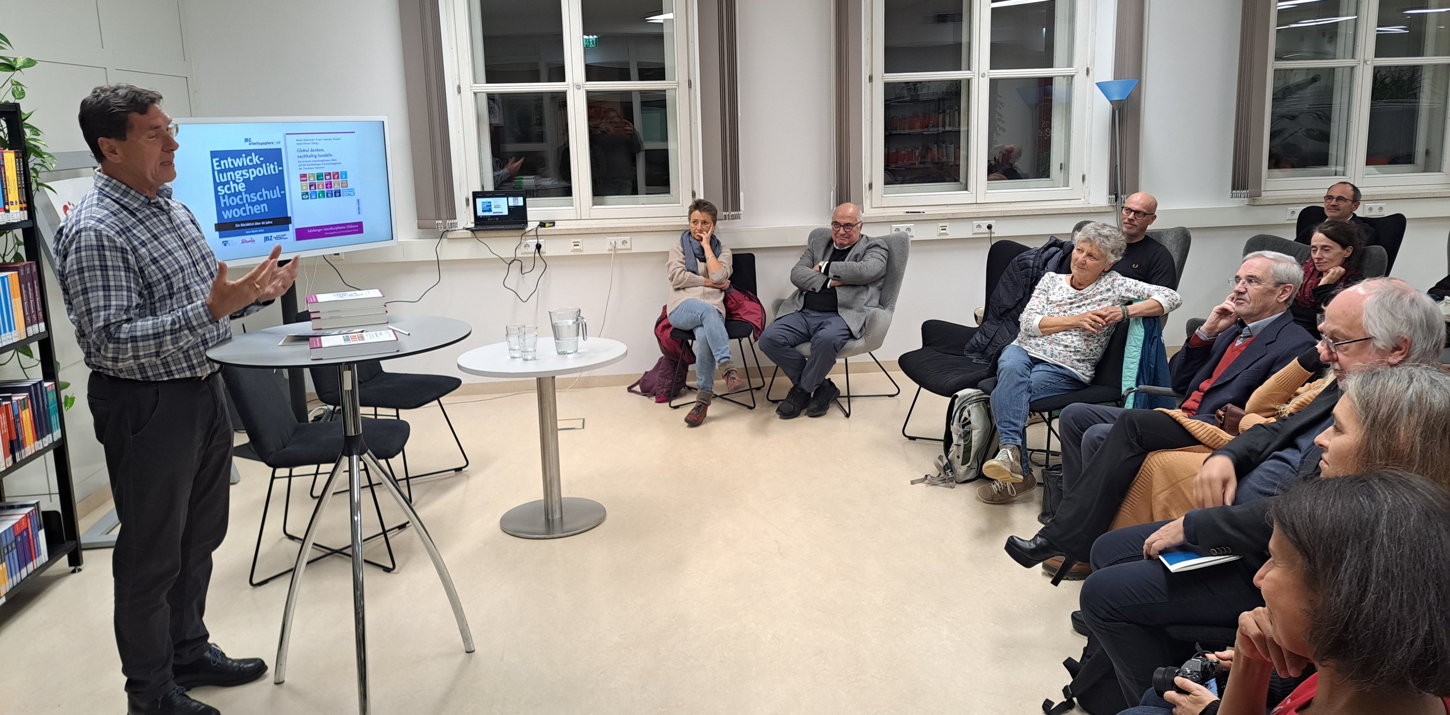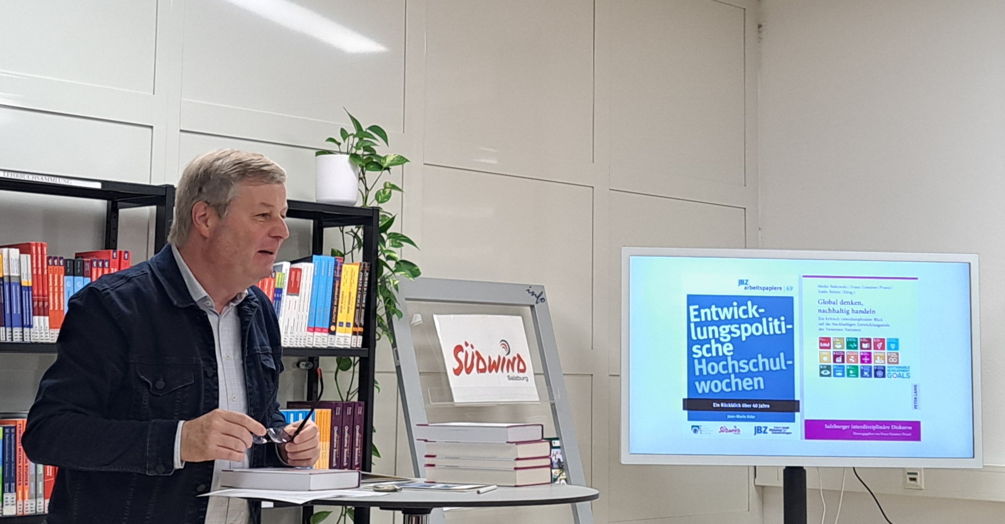 Am 5. November 2024 wurde der gemeinsam von Meike Bukowski und Franz Gmainer-Pranzl von der Universität Salzburg sowie Anita Rötzer von Südwind Salzburg herausgegebene Sammelband „Global denken, nachhaltig handeln. Ein kritisch-interdisziplinärer Blick auf die Nachhaltigen Entwicklungsziele der Vereinten Nationen“ in der Bibliothek der Gesellschaftswissenschaftlichen Fakultät präsentiert. Der Band enthält Beiträge einer Ringvorlesung zu den SDGs sowie von einer Entwicklungspolitischen Hochschulwoche.