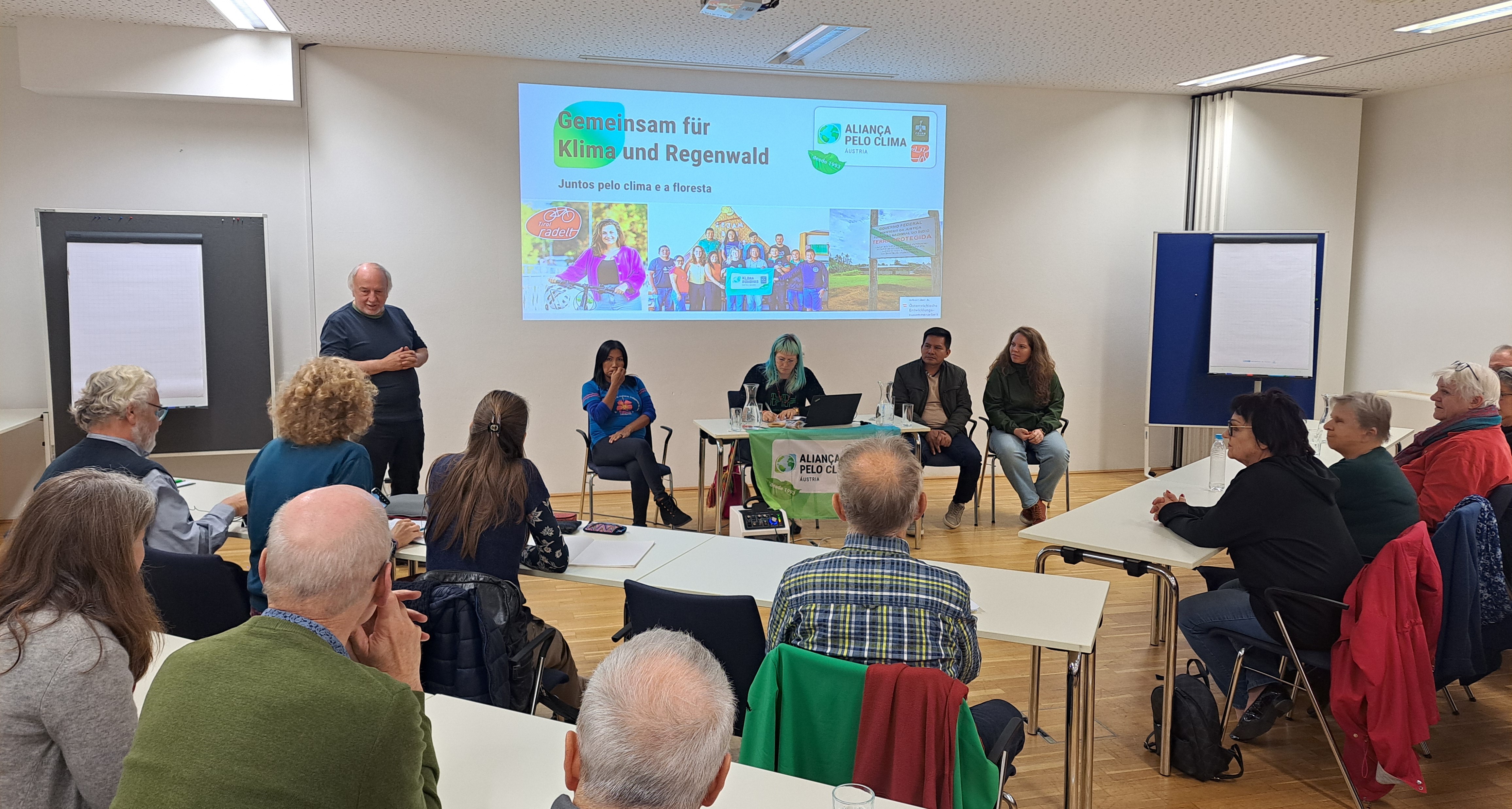 Vom 21. Oktober bis 10. November 2024 waren Dario Baniwa und Janete Figueredo Alves, die frisch gewählten Präsident:innen der Klimabündnispartnerorganisation FOIRN sowie Ana Letícia Pastore Trindade, Lieferketten-Expertin vom ISA – Instituto Socioambiental in Österreich auf Besuch, um über die aktuellsten Entwicklungen am Amazonas zu berichten. Eingeladen wurden sie vom Klimabündnis Österreich.