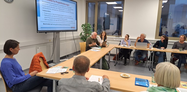 Danach gab es die Möglichkeit, Fragen zu den Förderbedingungen zu stellen, die auch von der Geschäftsführerin des Beirats, Kerstin Klimmer-Kettner, beantwortet wurden. Beim Thema Generationswechsel, also der Einbeziehung junger Menschen in die Vereinsarbeit, wurde mehrmals auf die Chance verwiesen, über Voluntariate neue Mitwirkende zu gewinnen. Birgit Almhofer, Mitglied des Beirats, berichtete von den positiven Erfahrungen, die InterSol mit Freiwilligeneinsätzen macht. Der Tenor: Freiwillige müssen gut betreut werden. Erfreulich war, dass in der Runde auch neue, junge Initiativen vertreten waren, die über Aufenthalte in den Projektländern entstanden sind.
